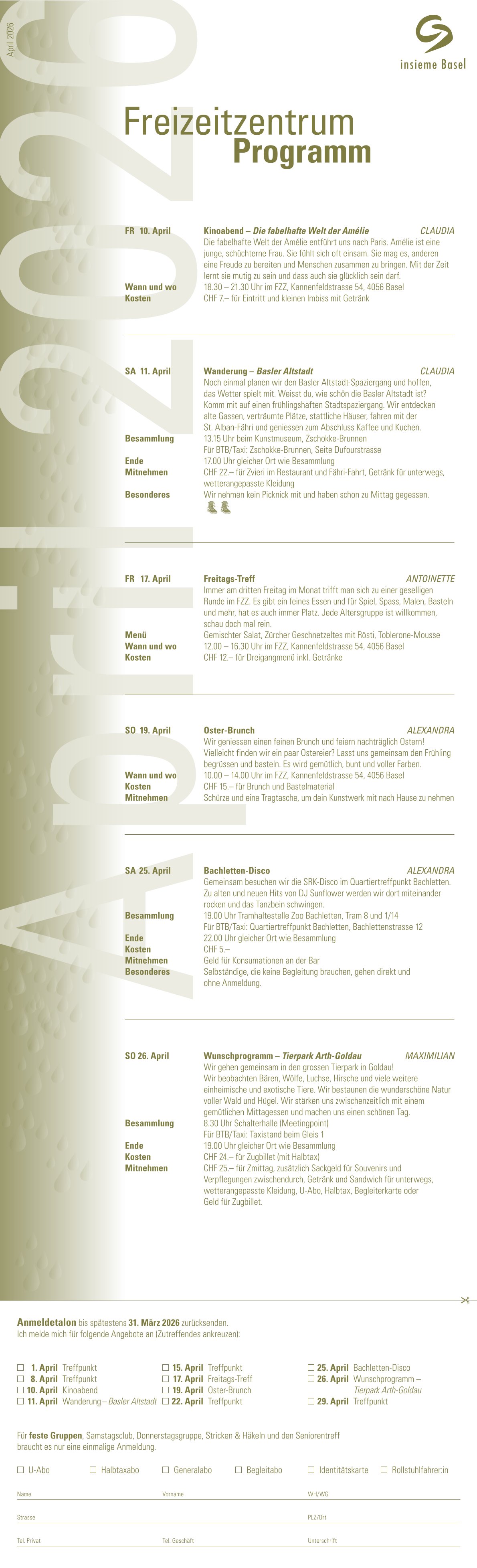 Brotkrümelpfad:Startseite | Monatsprogramm Monatsprogramm Hier geht's zur Anmeldung Anmeldung FZZ Programm FZZ Programm Januar 2026 Dokument herunterladen - 126,12 KB FZZ Programm Februar 2026 PDF Dokument herunterladen - 170,96 KB FZZ Programm März 2026 Dokument herunterladen - 145,09 KB FZZ Programm April 2026 Dokument herunterladen - 310,76 KB